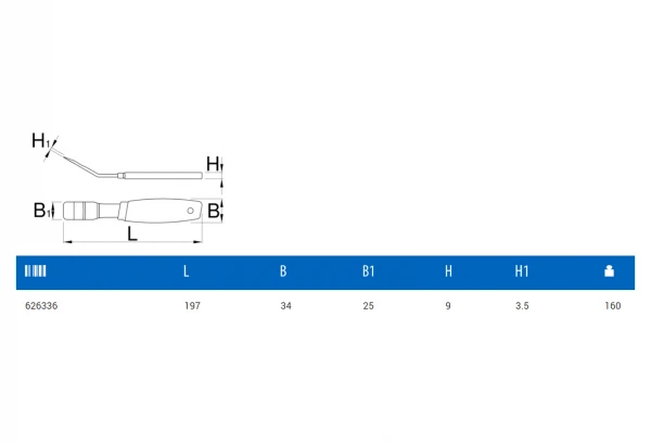 - Longueur : 197 mm.