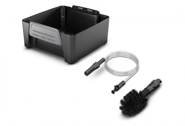 La brosse universelle qui peut être montée sur le pistolet, dissout les salissures tenaces à l’aide de ses poils doux et les rince. Grâce au tuyau d’aspiration vous pouvez également utiliser l’eau des sources alternatives, comme les puits ou les citernes.