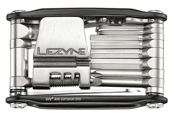 Le Lezyne CRV-20 est un multi-outils fonctionnel et durable, idéal pour une utilisation sur route ou hors-piste. Les plaques latérales en aluminium forgé sont faciles à saisir tout en portant des gants. Têtes anti-corrosion CrV + forgées à pivot central. Visserie de fixation en acier au chrome vanadium. Dérive-chaîne en acier inoxydable moulé. Trois clés à rayons intégrées au dérive-chaîne.