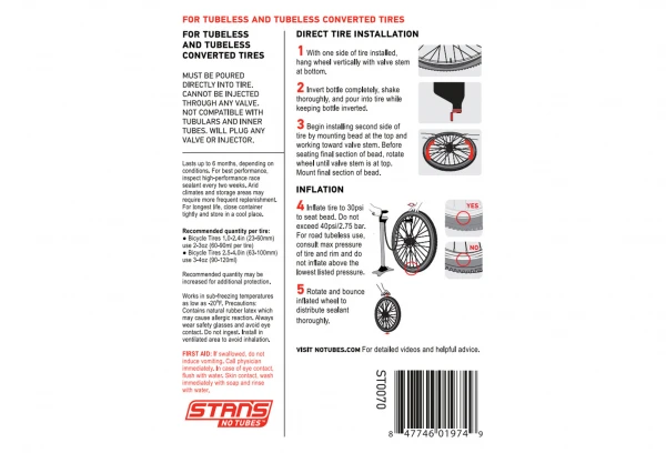 - Produit à verser impérativement directement dans le pneu. Ne pas injecter par la valve, qui serait instantanément bouchée.
